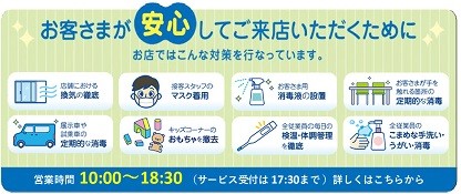 各店舗では、新型コロナ感染拡大防止のため定期的な換気や